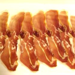Cooking Suggestions: Due to its tenderness, the very low amount of salt, low amount of fat and its unique flavour, Speck can be used in a wide variety of dishes. Enjoy it with mozzarella and rocket; cantaloupe and fresh figs; asparagus; very gently roast as croutons in cream-soups; salads; added to pasta and pizza at final level of cooking; vegetables; rolls etc. Even try serving Speck with a Cabernet or a sparkling wine.